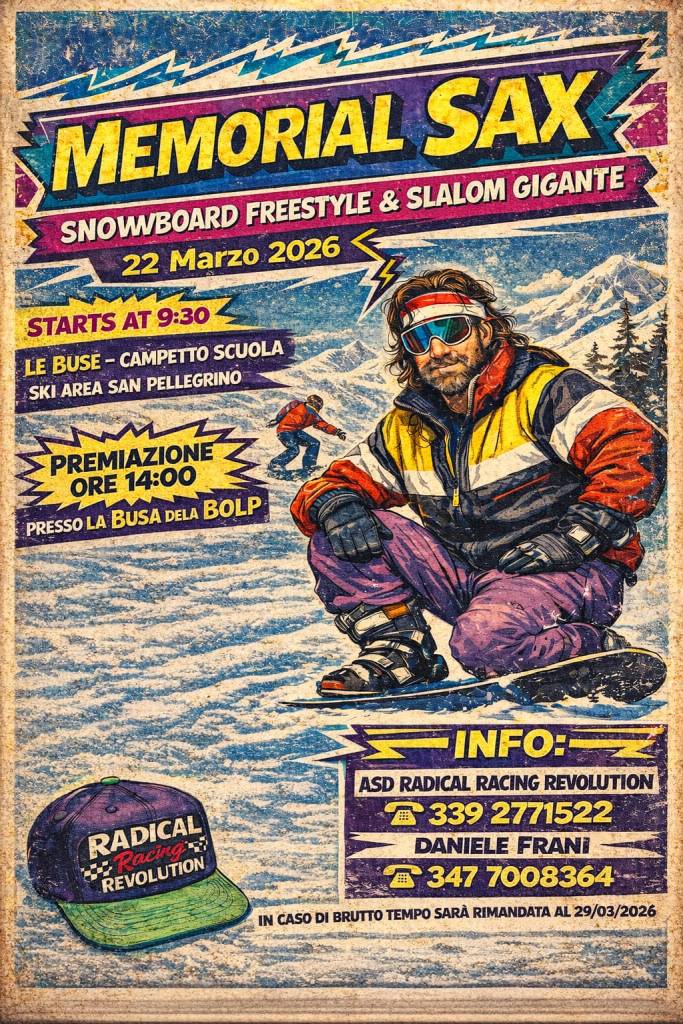 22 marzo 2026 vi aspettiamo al Memorial Sax, una gara di snowboard aperta a tutti