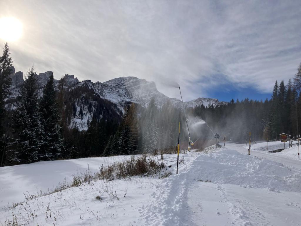 Eccola qua, arrivata silenziosa come al solito ieri sera alle 20/20:30 circa, la neve ha fatto capolino, con tutta la sua magia, non solo tra le alte cime delle Dolomiti, ma anche nei paesini a quote basse. Si è fatta attendere, si è fatta desiderare, ma alla fine si è presentata!!! Così il motore della Skiarea San Pellegrino ha colto subito la palla al balzo e ha messo al massimo i cannoni, sparando tutta la notte e tutto il giorno grazie alle ottime temperature che questa prima vera giornata invernale ci ha regalato.