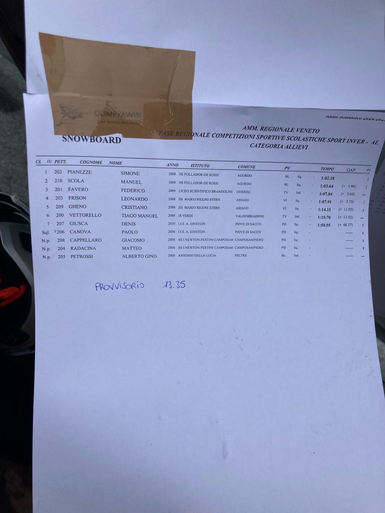 Un plauso speciale ai nostri giovani campioni Simone Pianezze, Manuel Scola e il talentuosissimo Justin Manfroi, che hanno dato il massimo, dimostrando talento, determinazione e un impegno invidiabile ai Campionati Studenteschi Regionali svoltisi ad Alleghe (Pescul) il 25 febbraio. I loro risultati sono stati eccezionali in termini di punteggio.
